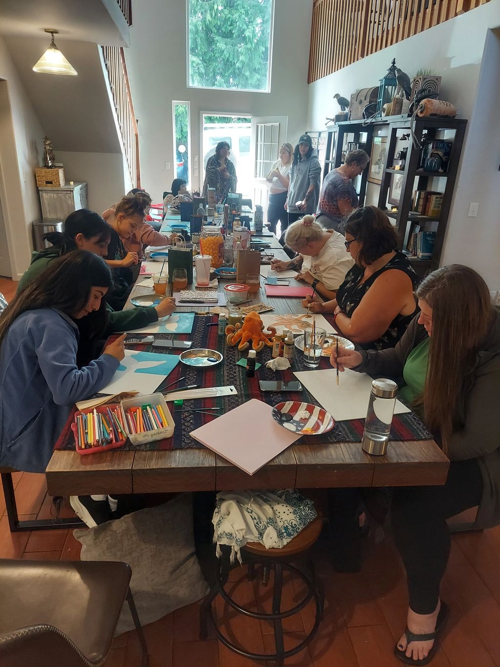 Team members bonding through art, creativity, and connection during a staff retreat.